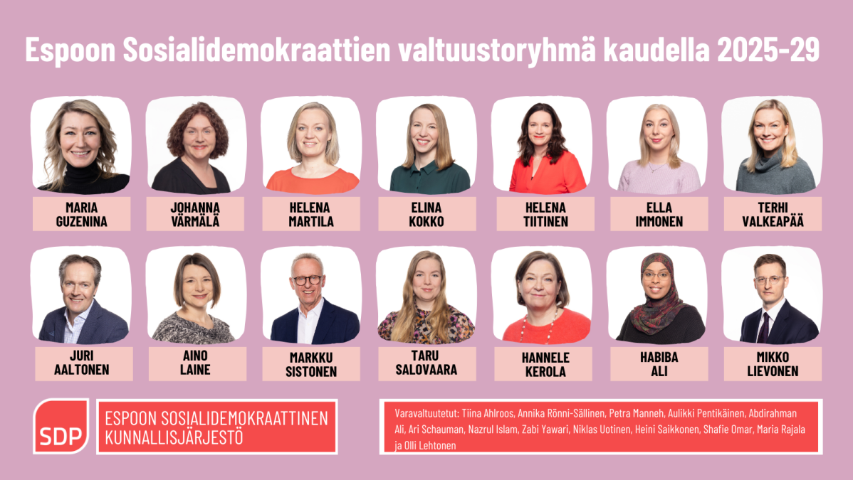 Espoon kaupunginvaltuuston SD-jäsenet ja varajäsenet 2025–2029:
